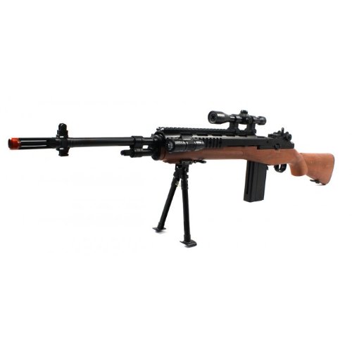 - Package Includes: Major Combat M14 Airsoft Gun Rifle Magazine Tactical Flashlight Mock Scope Integrated Vertical Bi-Pod Gun Sling Starter Pack of BB's